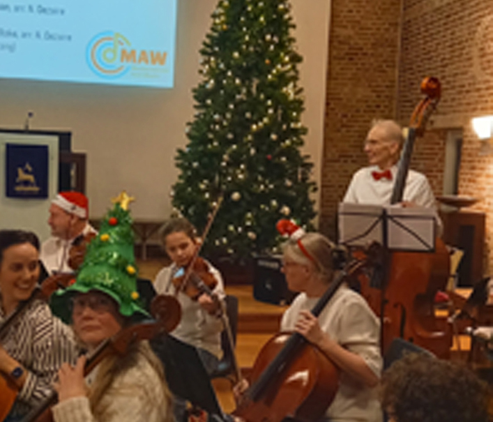 . Vaste indeling bij het strijkorkest Op Zaterdag 13 december heeft Pelle opnieuw deelgenomen aan de kerstuitvoering van het strijkorkest MAW uit Waalre. Ze brachten een uitvoering van The Skaters Waltz, Allegro uit Kerstconcert, Sleigh Ride en Walking in the Air ten gehore, met voorafgaand een optreden van leerlingen van de gitaarclub Waalre. Na de voorstelling werd Pelle gevraagd om voor vast deel te nemen in het strijk orkest. Dus we gaan nog wel meer van hem te horen krijgen. Heel goed gedaan jongen en veel succes. Voor meer foto’s klik hier voor mijn pagina. |